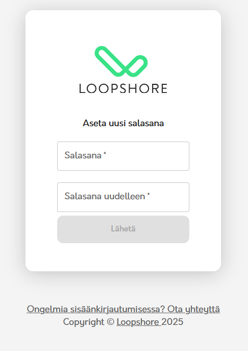 Mene osoitteeseen https://service.loopshore.com/ ja kirjaudu käyttäjätunnuksella sekä